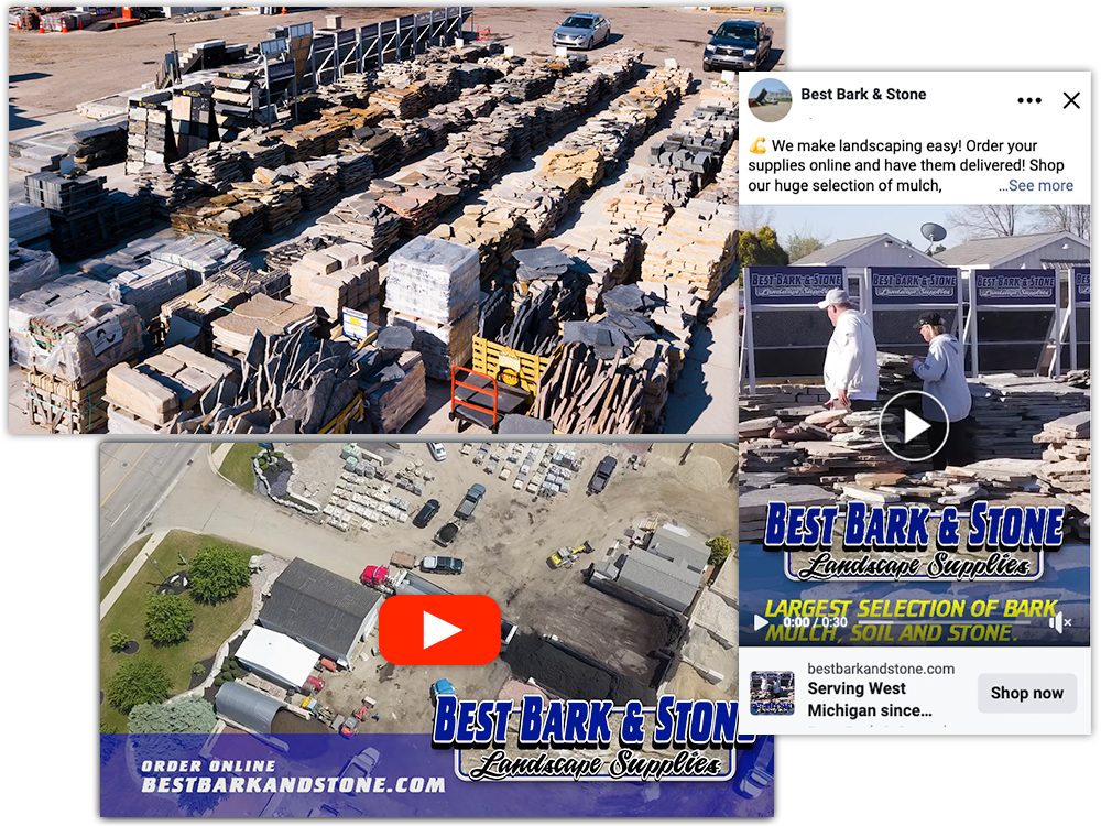 We partnered with Best Bark & Stone in Jenison, MI to boost both online and in-person sales, supported by fresh photos and videos that we produced. The company offers a wide selection of mulch, stone, dirt, and other landscaping supplies to homeowners and contractors across West Michigan.