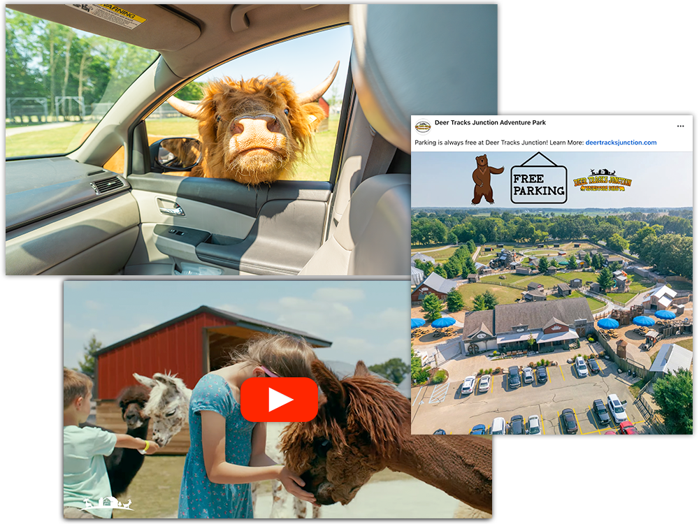 We partnered with Deer Tracks Junction right before their season began to manage all of their online marketing and creative production. Located in Cedar Springs, MI, they are a regional destination for animal lovers and families looking for a place where the wild meets them. Guests can enjoy unique animal feeding experiences and interactions across two parks: the Drive-Thru Safari Park and the Walk-Thru Adventure Park.
